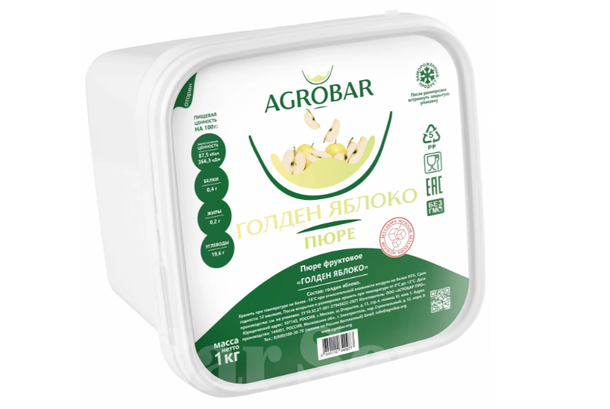 Каталог/Сиропы, пюре и продукты/Пюре, основы для коктейлей и концентраты 4490 Концентрат Яблоко Голден 1кг АГРОБАР